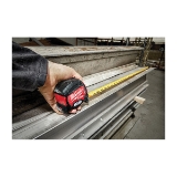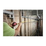 - Milwaukee STUD Measuring Tape, Magnetic, Measuring System: Imperial, 25 ft Blade Length, 1-5/16 in Blade Width, Steel Blade, Graduations: 1/16 in, 1/8 in, Stud Markings, 14 ft Standout, Automatic Rewind, Slide Locking, 3-Rivet Hook, Closed Case, ABS Case, Black/Red Case