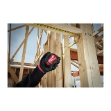 - Milwaukee STUD Measuring Tape, Heavy Duty, Measuring System: Imperial, 25 ft Blade Length, 27 mm Blade Width, 3/4 in Blade Thickness, Steel Blade, Graduations: 1/16 in, 10 ft Standout, Automatic Rewind, Automatic Locking, 3-Rivet Hook, Closed Reel Case, ABS Case, Black/Red Case