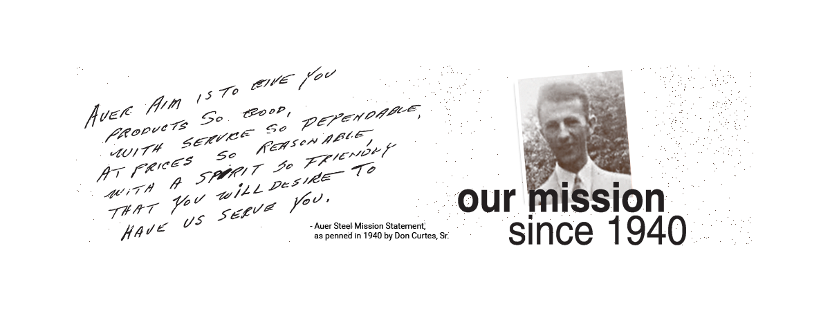Today, Auer Steel is a closely-held corporation owned and operated by the Curtes family. The Company's growth and success has always depended on a commitment to serving our customers. Auer Steel continues to have highly-skilled, dedicated and motivated employees who carry on Don Sr.'s commitment to value-added service.